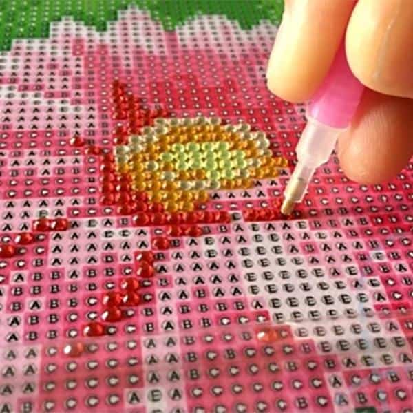 You definitely will not get very far in the world of diamond painting if you do not know your way around a setting tool and a tray. Fortunately, both are fairly simple and straightforward. The tray is where a diamond painter places their gems while they are painting. Trays come with grooved lines in their base so that the drills can be lined up in order to easily be picked up, instead of the painter constantly needing to sort through a messy pile. Most trays also have a pointed end, so that if you are finished painting at the moment and want to put your gems away, you can easily pour them back into their container.